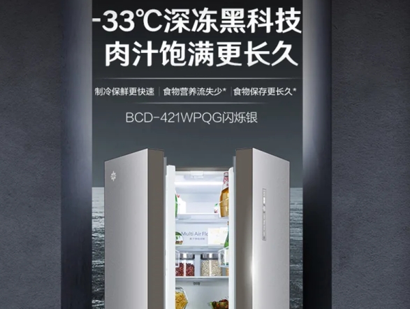 晶弘十字對(duì)開門冰箱BCD-421WPQG閃爍銀